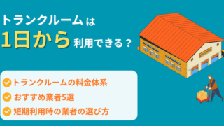マメ知識 トランクルームは1日から利用できる?短期利用におすすめのトランクルームも紹介 「トランクルームは1日から利用できるのか」について、その可否を解説します。料金体系や費用相場、短期利用におすすめのトランクルームも解説するので、ぜひ参考にしてみてください。 2025.09.20 マメ知識