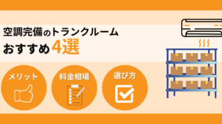 マメ知識 空調完備のトランクルームおすすめ4選!料金相場と選び方、メリットも解説 空調完備のおすすめトランクルーム4社について、概要・特徴と併せて紹介します。空調完備のトランクルームの料金相場や選び方、メリットも解説するので、契約先を選ぶ際はぜひ参考にしてみてください。 2025.10.31 マメ知識